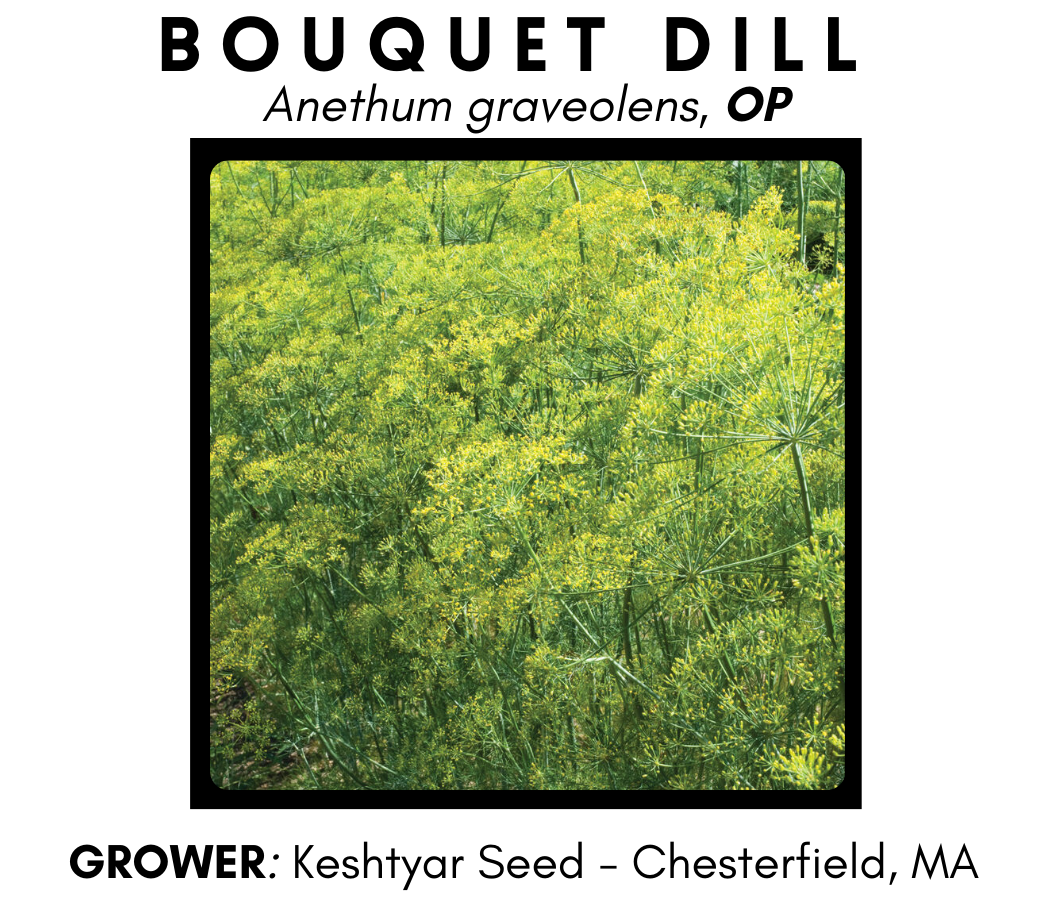 Dill variety grown for its abundant and fragrant foliage. grows 4-5' tall self sows easily. Flowers great for pollinators and seeds, seeds and foliage great for pickling!